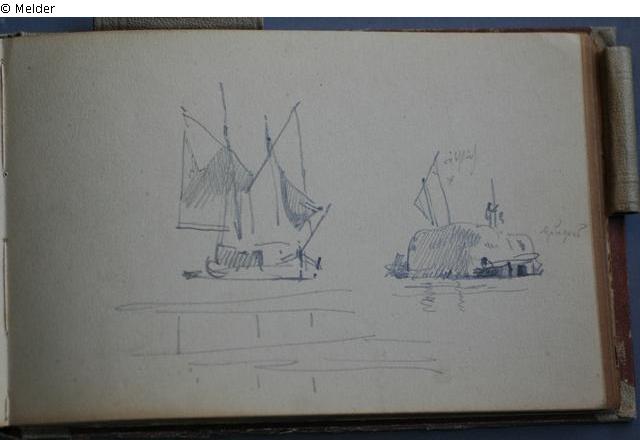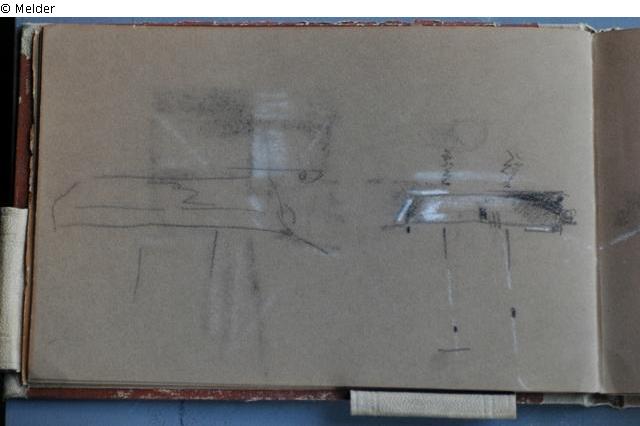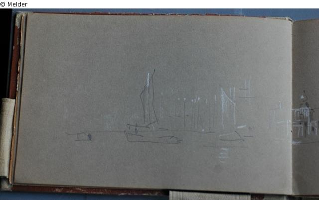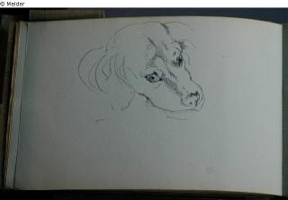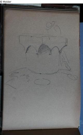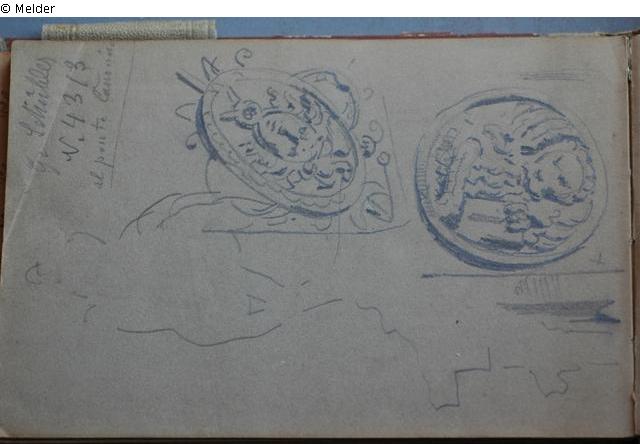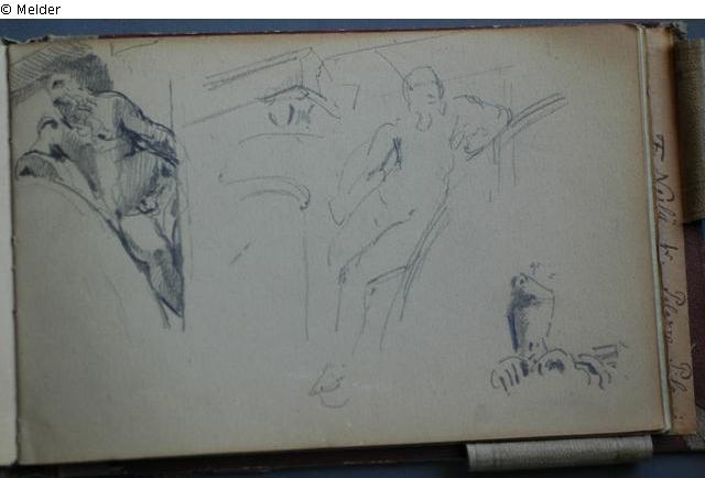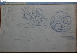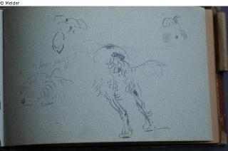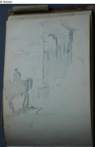 Motive überwiegend aus Rom und Umgebung; Skizzenbuch ohne Einband mit Landschaftszeichnungen, Architekturansichten, Tier- und Menschendarstellungen.