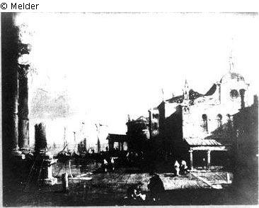 auch betitelt (italienisch): Capriccio Architettonico con Campielo e Chiesa; eines von zwei Gemälden (1 Paar), gerahmt