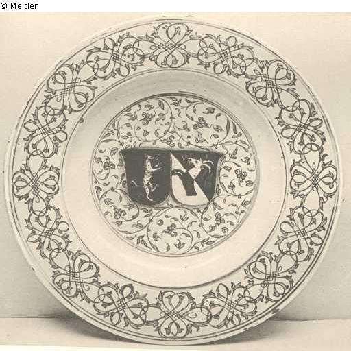 Teller mit Wappen zweier deutscher Familien