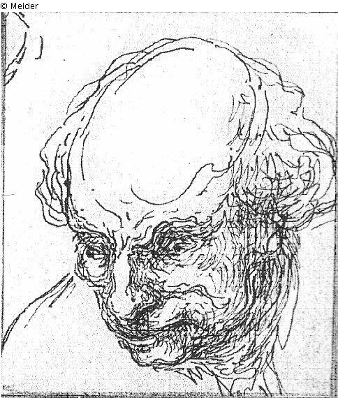 78. Tete d´homme tourné a trois quart vers la gauche. Plume. 9:8 cm.