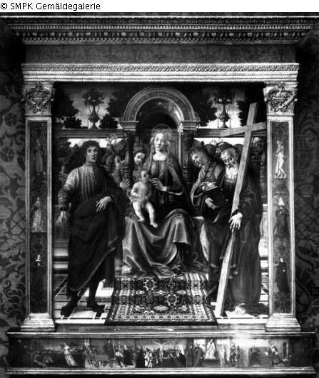 (frühere) Verwaltung: Berlin; (öffentliche) Sammlung; Staatliche Museen; Abteilung: Gemäldegalerie; Inv. Nr. 98; Besitzzeit; bis 1945; Person: Solly, Edward; Zugangsart: Ankauf; Zugangsdatum: 1821; Auslagerungsort: Berlin; Friedrichshain; (private) Sammlung; Flakturm Friedrichshain; Besitzzeit: bis 1945; Zugangsart: Auslagerung; Zugangsdatum: 1941/1942; Vorbesitzer: Berlin & London; (private) Sammlung: Solly, Edward; Besitzzeit: bis 1821