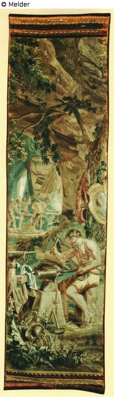 Suchmeldung | Einzelobjekt Vulcan schmiedet eine Rüstung für Telemach Lost Art-ID579144 Vorherige Weiter Hersteller/Künstler:in Orley, Jan van (Skizze); Vos, Jodocus (Weber) TitelVulcan schmiedet eine Rüstung für Telemach Datierung1712ObjektartGebrauchs- / RaumtextilieObjektgruppeKunsthandwerk / -gewerbeMaterial / TechnikTextil (Wolle) ; Textil (Seide) / gewebt Höhe 364,00 cm Breite 100,00 cm InventarnummerHL 2756Beschreibung Literatur: Vlámské Tapiserie na Zámcích Hluboká a Český Krumlov Kateřina Cichrová (ISBN978-80-87890-02-8), mit Abb.Gewoben, elf Maschen pro Zentimeter. Weiterlesen Weniger anzeigen Provenienz Sammlung von Dr. Adolph Fürst zu Schwarzenberg; 1940 von der Gestapo beschlagnahmt; Schloss Hluboká nad Vltavou (Frauenberg) Weiterlesen Weniger anzeigen Veröffentlicht seit14.09.2018 Kontakt Kontaktanfragen richten Sie bitte an das Deutsche Zentrum Kulturgutverluste.