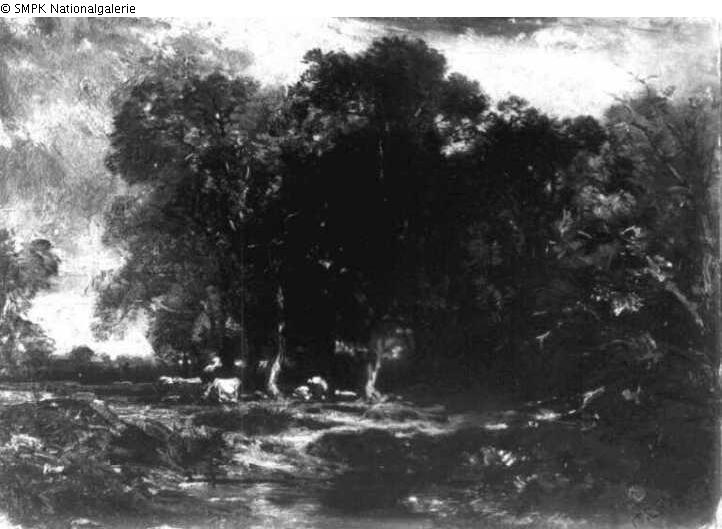 Tafelmalerei: Bild: Wald & Rindvieh & Wasserlauf