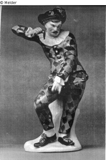 Trägt einen schwarzen Hut mit dunkelvioletter Feder und Rosette, weißen plissierten Kragen. Wams und die enganliegenden Hosen sind gelb, rot und blau gerautet. Knöpfe und Borten sind golden, Gürtel, Ärmelaufschläge und Schuhe schwarz, an letzteren grüne Rosetten. Der halbrunde Sockel ist weiß. Ohne Marke.