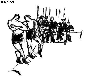 Zwei Boxer mit Zuschauern hinten