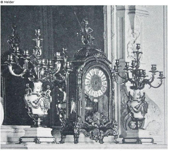 Es handelt sich um zwei vasenartige Kerzenständer (oder auch Kaminleuchter) als sog. "Beisteller" zu einer Boulleuhr. Sie sind mit je neun Brennstellen versehen und aufwendig verziert.