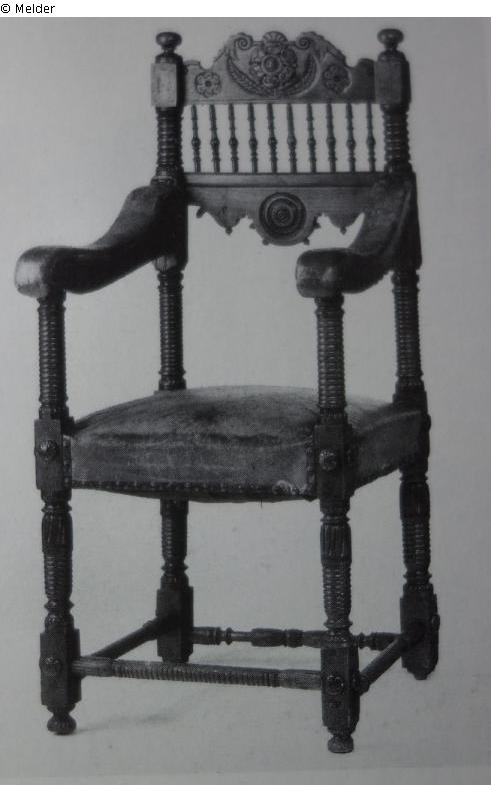 Armchair with carving, turnery and leather covering