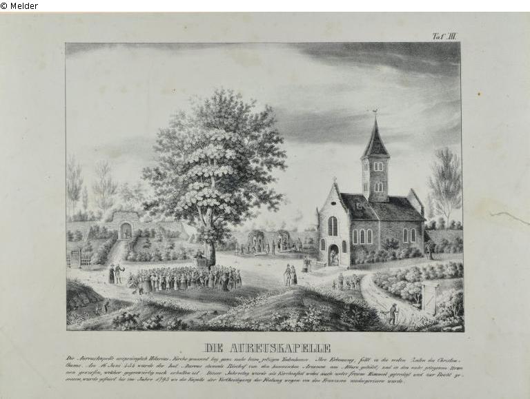 Plate III from "Historische und architektonische Merkwürdigkeiten von Mainz in seiner Vorzeit und Gegenwart herausgegeben in der Lithographie von D. Wasserburg in 35 Lieferungen, Mainz 1842". Designation in the middle below: "Die Aureuskapelle". Without passepartout.