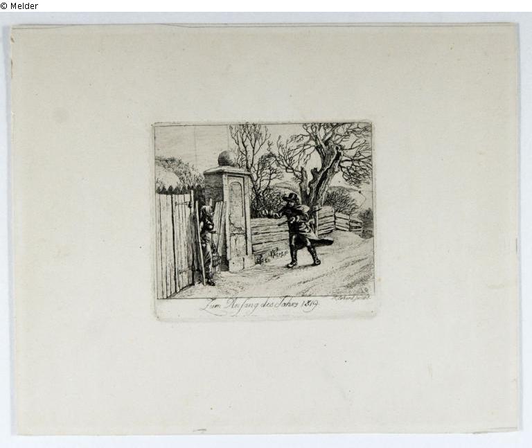 In the centre of the plate under the image: "Zum Anfang des Jahres 1819"; on the right of the plate under the image: JC Erhard fec 1818.