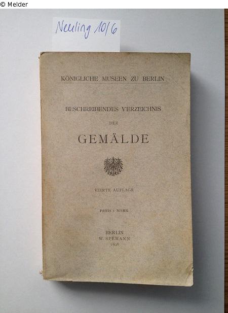 Found-Object Report | Object report Beschreibendes Verzeichnis der Gemälde der Königlichen Museen zu Berlin Lost Art-ID529978 Previous Next Editor Königliche Museen zu Berlin Publisher Speemann TitleBeschreibendes Verzeichnis der Gemälde der Königlichen Museen zu BerlinPlace of releaseBerlin Date of publication1898Object typeBookGroup of reported objectsLibrary objectsProvenance Since 1961, Potsdam-Museum; previously: 1945-1960 Walter Neuling, Salzwedel, and Otto Neuling, Borkheide; previously: unknown Read more Read less Published since11.11.2015 Contact Provenienzforschung, Hausarchiv, Bibliothek Potsdam-Museum - Forum für Kunst und Geschichte Am Alten Markt 9 14467 Potsdam Germany Phone+49(0)331 - 289 6821Fax+49(0)331 - 289 6808E-Mailmuseum-geschichte@rathaus.potsdam.deHomepagehttp://www.potsdam.de/potsdam-museum