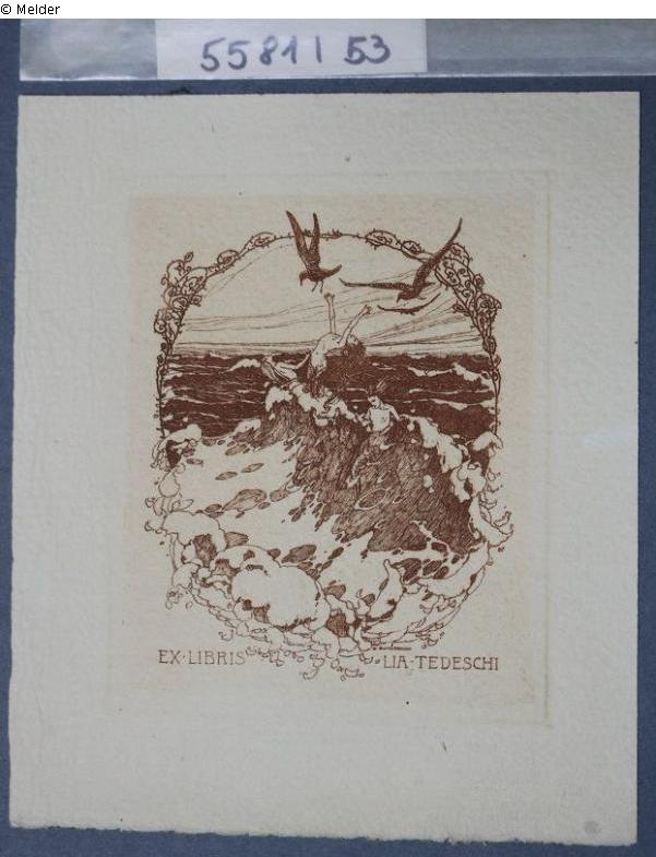 Text below: "EX LIBRIS LIA TEDESCHI". On the reverse side noted in pencil: "Erich Schütz Wien" and "1349/115".