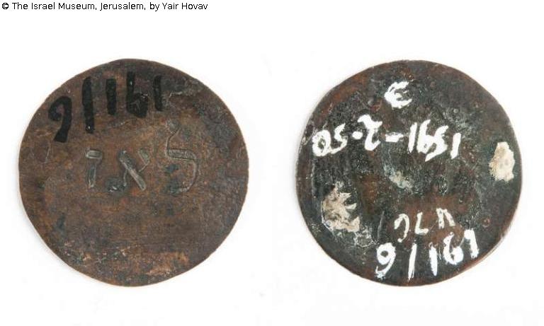Found-Object Report | Object report Burial society token Lost Art-ID573136 Previous Next Link to item in IMJ siteLink to the main site TitleBurial society tokenPlace of manufactureNetherlands Dating1701/1800Object typeCrafts and other folk artsGroup of reported objectsCrafts and other folk artsMaterial / TechniqueCopper / engravedInventory numberB50.02.1591;191/006Description Object Name: Burial society tokenSubject: Hevra Kadisha equipmentInscribed in Hebrew: "Lau" Read more Read less HoldingJudaicaProvenance Received through JRSO (Jewish Restitution Successor Organization)Wiesbaden collecting point number: V76 Read more Read less Published since10.01.2018 Contact Israel Museum POB 71117 9171002 Jerusalem Israel Phone972-2-6708811Fax972-2-5631833E-Mailinfo@imj.org.il Contact Bareket MannPositionRegistrarE-Mailbareket@imj.org.il
