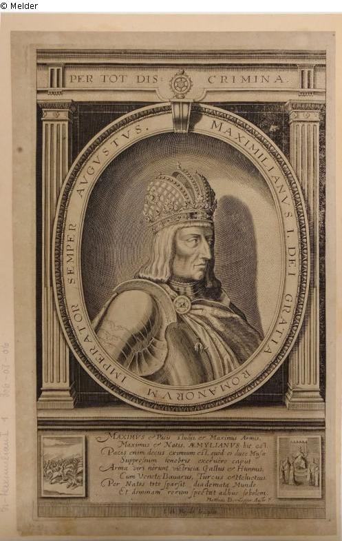 Found-Object Report | Object report Bust in written oval, Maximilian I (Per tot discrimina..) Lost Art-ID593028 Previous Next Artist / Creator Heyden, Jacob van der Birth (um) 1572 / (um) 1585/1590, Mecheln / Köln Death 1636, Strasbourg (Elsaß) Place of activityElsaß; Strasbourg (Elsaß); Marburg TitleBust in written oval, Maximilian I (Per tot discrimina..)Object typePrintGroup of reported objectsGraphicMaterial / TechniquePaper / printed (copper engraving) Height 34.50 cm Width 23.00 cm Inventory number4.0.18740Provenance until 1933:unknownin 1933:Book and art antiquarian bookshop von Diepenbroick-Grüter and Schulz, Berlinfrom 1933:Reichspostmuseum BerlinPurchase via dealer Read more Read less Published since05.01.2021 Contact Museumsstiftung Post und Telekommunikation Museum für Kommunikation, Berlin Leipziger Straße 16 10117 Berlin Germany Phone+49 (0)30 202 94 0Fax+49 (0)30 202 94 111E-Mailmfk-berlin@mspt.deHomepagehttps://www.museumsstiftung.de Contact Dr. Veit DidczuneitPositionAbteilungsleiter SammlungenPhone+49 (0)30 71302 710E-Mailv.didczuneit@mspt.de