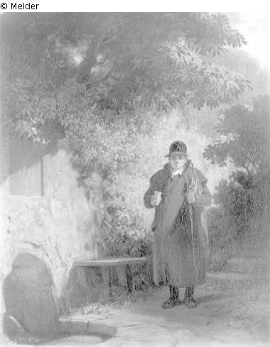 Found-Object Report | Object report The Fountain Guest (At the Sophienquelle) Lost Art-ID219075 Previous Next Artist / Creator Spitzweg, Carl Birth 1808.02.05, München Death 1885.09.23, München Place of activityPommersfelden; Benediktbeuern TitleThe Fountain Guest (At the Sophienquelle)Object typePaintingGroup of reported objectsPaintingMaterial / TechniqueOil ; Canvas / painted Height 36.50 cm Width 30.00 cm Inventory numbermü1298/2Description Links die Quelle, über die Baumlaub hängt. Rechts zum Beschauer gewandt der Brunnengast mit Glas in der Rechten und Schirm unter links angewinkeltem Arm. Auf dem Kopf ein runder Hut. Read more Read less Holding Kulturgüter aus dem ehemaligen ReichsvermögenProvenance aus privatem Eigentum über Galerie Almas, München, 1939 an das Deutsche Reich verkauft Read more Read less Published since2001 Contact Kunstverwaltung des Bundes Herbert-Bayer-Straße 5 13086 Berlin Germany E-Mailprovenienzforschung@kvdb.bund.deHomepagehttp://www.kunstverwaltung.bund.de