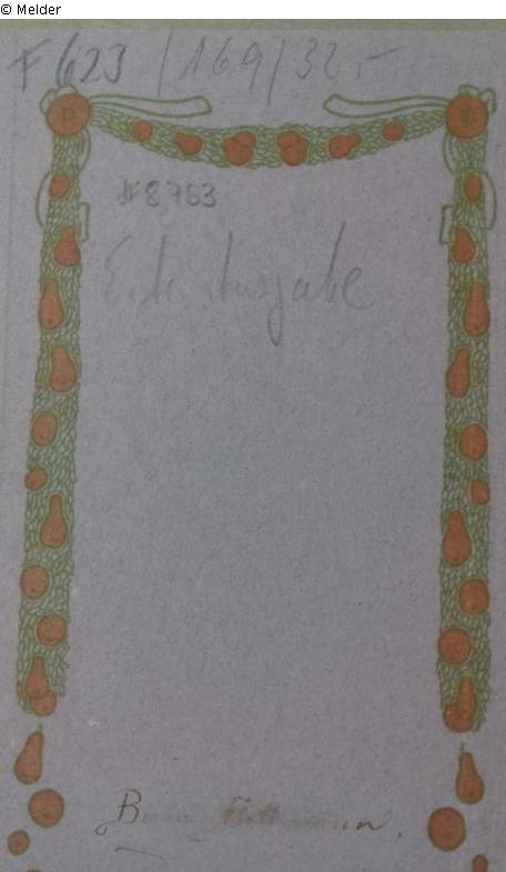 Die Erstausgabe erschien als Band 13 der Reihe „Die Dichtung“, hrsg. v. Paul Remer. Lilafarbener Pappumschlag mit schwarz-rotem Aufdruck. Der Band enthält 8 photographische Abbildungen. Girlandendekor mit Früchten, Bleistifteintragung auf der Rückseite