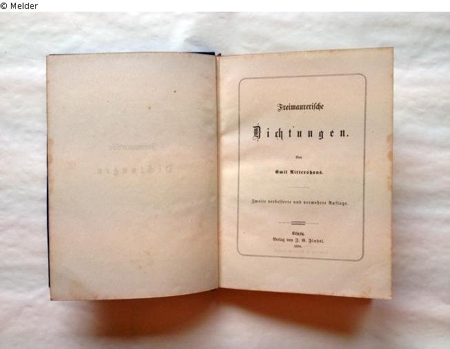 Found-Object Report | Object report Freimaurerische Dichtungen. (2. verbesserte und vermehrte Auflage) Lost Art-ID520878 Previous Next Author Rittershaus, Emil Printer A. Stark, Chemnitz Publisher J. G. Findel TitleFreimaurerische Dichtungen. (2. verbesserte und vermehrte Auflage)Place of releaseLeipzig Date of publication1878Object typeBookGroup of reported objectsLibrary objectsProvenance unknown Read more Read less Published since11.08.2014 Contact Provenienzforschung, Hausarchiv, Bibliothek Potsdam-Museum - Forum für Kunst und Geschichte Am Alten Markt 9 14467 Potsdam Germany Phone+49(0)331 - 289 6821Fax+49(0)331 - 289 6808E-Mailmuseum-geschichte@rathaus.potsdam.deHomepagehttp://www.potsdam.de/potsdam-museum