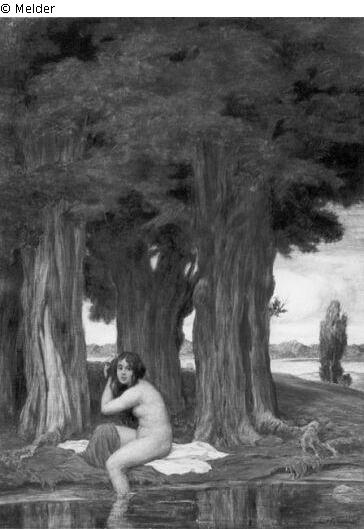 Found-Object Report | Object report Girl bathing beneath the trees Lost Art-ID218995 Previous Next Artist / Creator Zumbusch, Ludwig von Birth 1861.07.17, München Death 1927.02.28, München Place of activityWien TitleGirl bathing beneath the treesObject typePaintingGroup of reported objectsPaintingMaterial / TechniqueOil ; Canvas / painted Height 73.00 cm Width 53.00 cm Inventory numbermü11369Description Signature: L.v.Zumbusch;In front a pond. The girl looking out of the picture to the left, busy with her hair. The left foot in the water. Behind three large trees. Read more Read less Holding Kulturgüter aus dem ehemaligen ReichsvermögenProvenance Formerly Galerie Hermes, Frankfurt a. Main; transferred to the Reich Chancellery, Munich, before July 1938. Read more Read less Published since2001 Contact Kunstverwaltung des Bundes Herbert-Bayer-Straße 5 13086 Berlin Germany E-Mailprovenienzforschung@kvdb.bund.deHomepagehttp://www.kunstverwaltung.bund.de