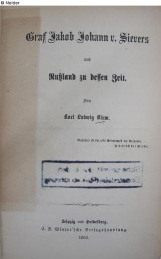 Graf Jakob Johann von Sievers und Rußland zu dessen Zeit