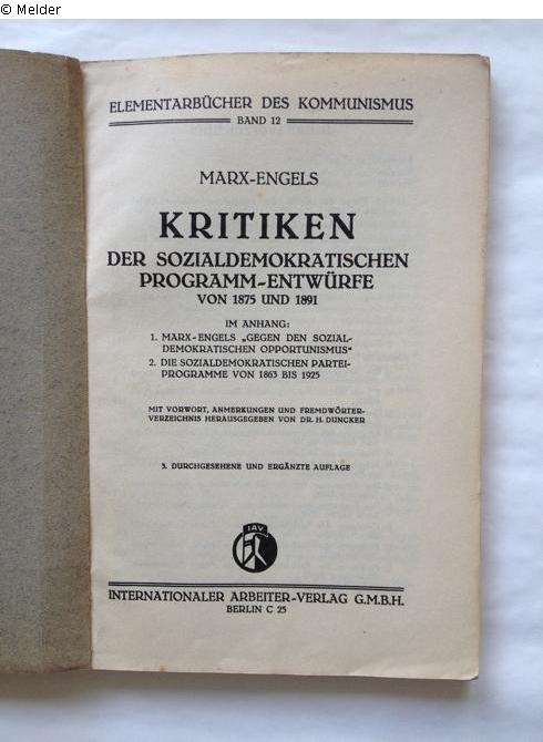 Kritiken der sozialdemokratischen Programm-Entwürfe von 1875 und 1891. (3. durchgesehene und ergänzte Auflage). Reihe: Elementarbücher des Kommunismus, Bd. 13