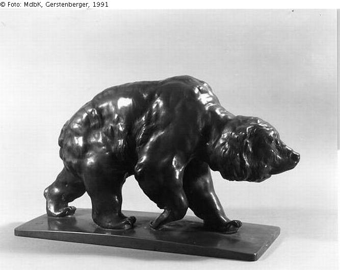 Bezeichnet (Tier nach rechts) auf der Plinthe linke Seite rechts: "19RBII" [1 in 1911 jeweils mit Punkt über Zeilenhöhe, lig. Monogr. R und B]; an der Plinthe linke Seite rechts Gießerstempel "GUSS: A.MILDE & Co DRESDEN"