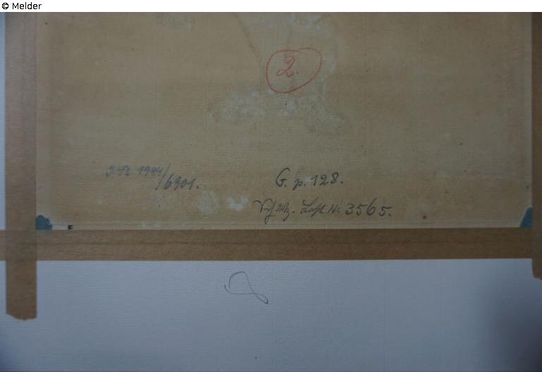 verso in red: 2 [in circle]; in pencil: I .N: 1944/6901; G. p. 128.; Sch[...] Lo[...] N: 3565