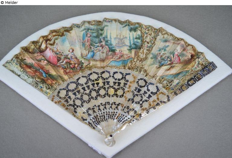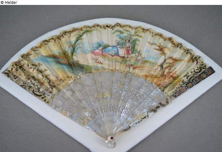Louis XV fan with colorfully painted allegorical shepherd scene