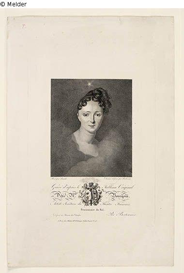 Inscription: Print par Sicardi / Dessiné et Gravé par Bertonnier / Gravé d'après le Tableau Original / et Dedié à Mlle Bourgoin / Artiste Sociétaire du Théâtre Francais ... A Paris, chez Blaisot, Md. d. Estampes, Palais Royal No. 233.