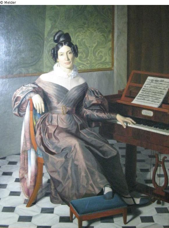 Portrait of Isabella Colbran (Portrait of the first wife of the composer Rossini, Isabella Colbran, sitting at the grand piano)