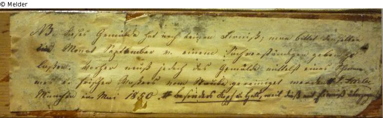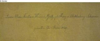 see G 2169; verso: picture carrier top stamp „[M]olerleinwand / Fabrik / von / A. SCHULZMANN / in / München“, bottom „Louise Marie, Fürstin v. Windisch-Grätz, geb. Prinz: v. Meklenburg Schwerin, / gemalt v. Jos: Stieler 1849.“, stamp