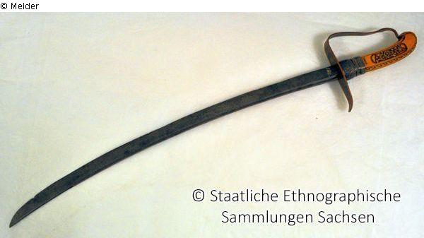 Sabre, blade oriental and hilt European, hilt, ferrule and parry bar each with floral ornaments, on the blade white number 1981 or similar.