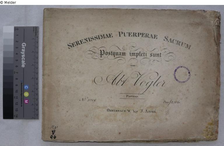 Circular stamp: "Musikwissenschaftliches Institut der Universität Köln"; stamp: "Musikwissenschaftliches Institut der Universität Köln"; handwritten inventory number: "111103";