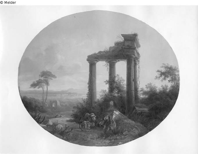 Found-Object Report | Object report Southern landscape with temple ruin Lost Art-ID219016 Previous Next Artist / Creator Rottmann, Carl Birth 1797.01.11, Handschuhsheim Death 1850.07.07, München Place of activityHeidelberg; München; Rom TitleSouthern landscape with temple ruinObject typePaintingGroup of reported objectsPaintingMaterial / TechniqueOil ; Cardboard / painted Height 39.00 cm Width 46.50 cm Inventory numbermü11717Description oval Read more Read less Holding Kulturgüter aus dem ehemaligen ReichsvermögenPublished since2001 Contact Kunstverwaltung des Bundes Herbert-Bayer-Straße 5 13086 Berlin Germany E-Mailprovenienzforschung@kvdb.bund.deHomepagehttp://www.kunstverwaltung.bund.de