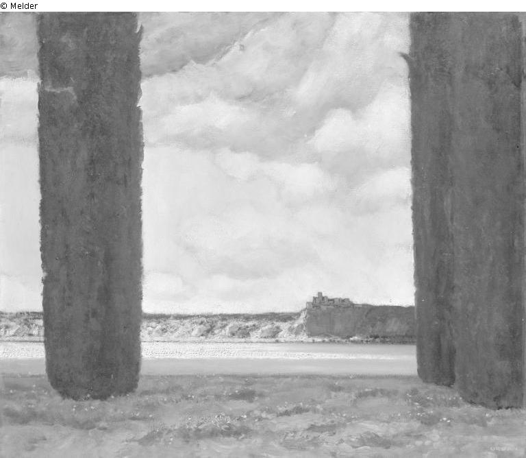 Signed lower right: "Urban", backsite: top center with black crayon a crest-like box on it "URBAN" and insite "op 3333 / v. / 1929", below them a dedication with cleared surnames: "Herrn Dr. M....... in Dankbarkeit zueeignet / Mai / 1929", on the canvas below left numbers superimposed: "7666 / 8050 / 8050 / aq g ag / 7666" right " I mft I Cef. I u.d. I Cas. D 1/2 Lilly 8047", centered below them" 2.1.476 -o- H 8" and quite on the edge unreadable "Ruodgen L", on the stretcher top left in blue "31 R 5/4 m" (location Meiserstr.), next to it in blue and Sütterlin "Schlesinger 6", bottom left in red "PR" (Photo Roth), below them label BStGS "Inv. Nr. 12255", on the stretcher down in pencil "6178 2.1.476 8 H 20 20 "