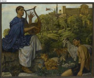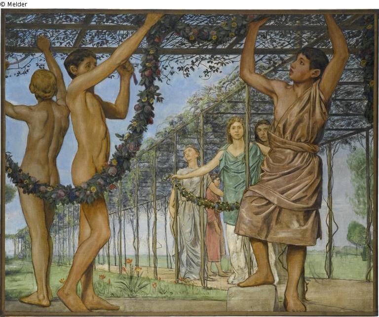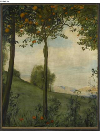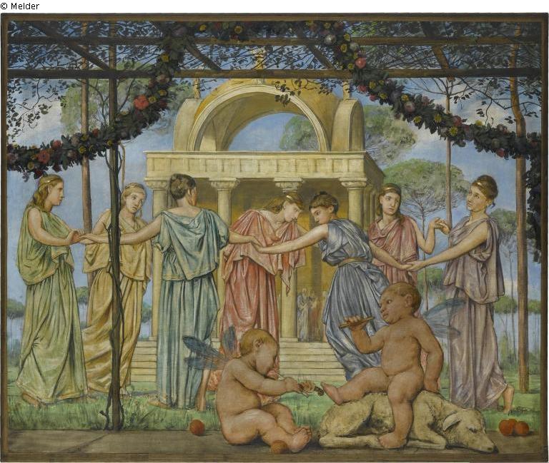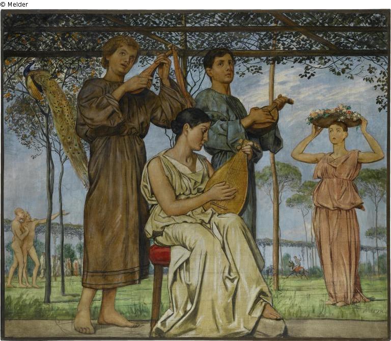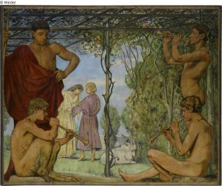 The frieze comes from the music room of the Munich villa that the mathematics professor Alfred Pringsheim and his wife Hedwig and their children had lived in at Arcisstrasse 12 since 1889. The frieze consists of 14 large-format paintings and 12 narrow borders. In total there are 26 individual pictures.