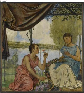 After the sale and scheduled demolition of the villa in 1934, the frieze was first loaned to the Staaatsgalerie. In 1935 it was acquired by the Staatsgalerie for 30,000 RM. This sum does not even come close to the market prices customary for Thomas' works between 1933 and 1945. The average value for a museum-worthy painting during this period was 20,000 RM. The Pringsheim couple made this sale against the background of the loss of their Munich home and the reprisals by the Nazi state, to which Pringsheim was exposed as a Jew and important collector, under great time and political pressure.
