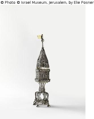 Found-Object Report | Object report Tower-shaped spicebox Lost Art-ID571572 Previous Next Link to item in IMJ siteLink to the main site TitleTower-shaped spiceboxPlace of manufactureBrno, Moravia, Austrian Empire Dating1867–72Object typeContainerGroup of reported objectsCrafts and other folk artsMaterial / TechniqueSilver / filigree, cut, and partly gilt Height 35.00 cm Width 7.00 cm Inventory numberB50.02.1015;124/138Description Object Name: SpiceboxSubject: Spice boxes Read more Read less HoldingJudaicaProvenance Received through JRSO (Jewish Restitution Successor Organization)Wiesbaden collecting point number: 1754 Read more Read less Published since14.11.2017 Contact Israel Museum POB 71117 9171002 Jerusalem Israel Phone972-2-6708811Fax972-2-5631833E-Mailinfo@imj.org.il Contact Bareket MannPositionRegistrarE-Mailbareket@imj.org.il
