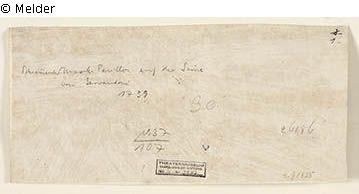 Reverse: [Stamped below centre above inventory stamp in blue:] Collector's stamp incomplete impression, probably Collection Dr Franz Schnitzer, Munich (in Lugt: L.1046 ) [in pencil centre right:] 26186 [below:] v. 71525 [in pencil centre:] 30 [in pencil top right:] 2.- (crossed out) [below:] 1.- [in pencil top left:] Floating Music Pavilion [below:] by Servandoni [below:] 1739