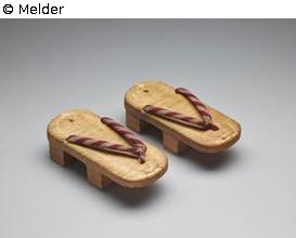 Found-Object Report | Object report Wood sandals (geta) Lost Art-ID568044 Previous Next Artist / Creator Unknown (Japanisch) TitleWood sandals (geta) Dating1801/1900Object typeClothingGroup of reported objectsCrafts and other folk artsMaterial / TechniqueWood ; Straw ; FabricMeasuresLänge: 22,00 cm Height 6.50 cm Width 9.00 cm Inventory number115998 a+bProvenance Adolf Grünwald (1881-1961) * Stuttgart † Sao Paulo; gift 1937 Read more Read less Published since18.07.2017 Contact Linden-Museum Stuttgart Hegelplatz 1 70174 Stuttgart Germany Phone+49-(0)711-2022-400 Fax+49-(0)711-2022-590 Homepagehttp://www.lindenmuseum.de