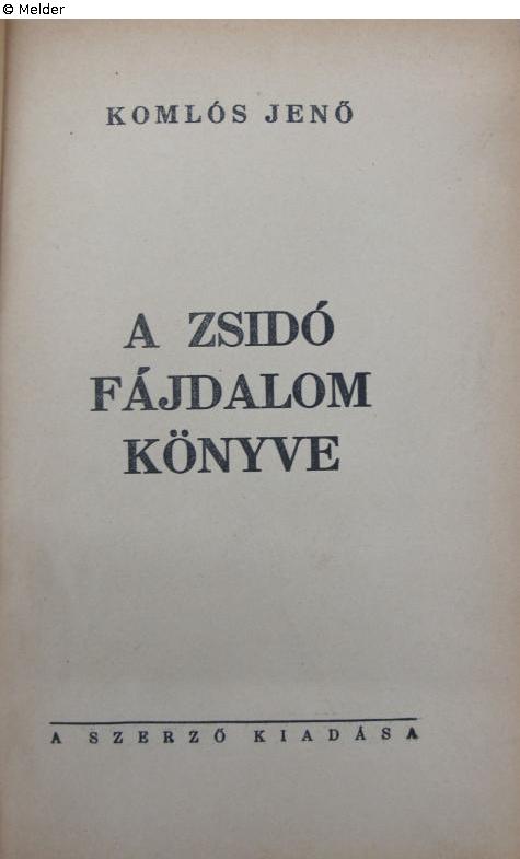 Found-Object Report | Object report A zsidó fájdalom könyve Lost Art-ID623500 Previous Next Author Jenő Komlós Publisher Selbstverlag TitleA zsidó fájdalom könyvePlace of releaseBudapest Date of publication1939Object typeBookGroup of reported objectsLibrary objectsSignatureW 02/16.461Description 8° Read more Read less Provenance Suspicion of looted property, 1984 Südost-Institut Munich (Michael Schwartz estate) Read more Read less Status restituted Published since08.10.2024 Contact Leibniz-Institut für Ost- und Südosteuropaforschung Bibliothek Landshuter Str. 4 93047 Regensburg Germany Homepagehttps://leibniz-ios.de/bibliothek/ueber-die-bibliothek Contact Tillmann Tegeler, M. A.PositionArbeitsbereich Bibliothek und elektronische Forschungsinfrastruktur Leiter des ArbeitsbereichsE-Mailtegeler@ios-regensburg.de