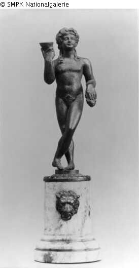 Sculpture in the round: statuette: the story of Bacchus (Dionysus), Liber & boy (child between infancy and adolescence) & standing with legs crossed, leaning standing, sitting or lying & drinking vessels.