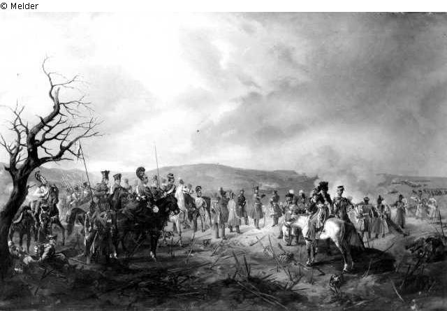 "Nach der Angabe eines hohen Augenzeugen". In der Bildmitte Friedrich Wilhelm III. (?); links von ihm Prinz Wilhelm (I.).