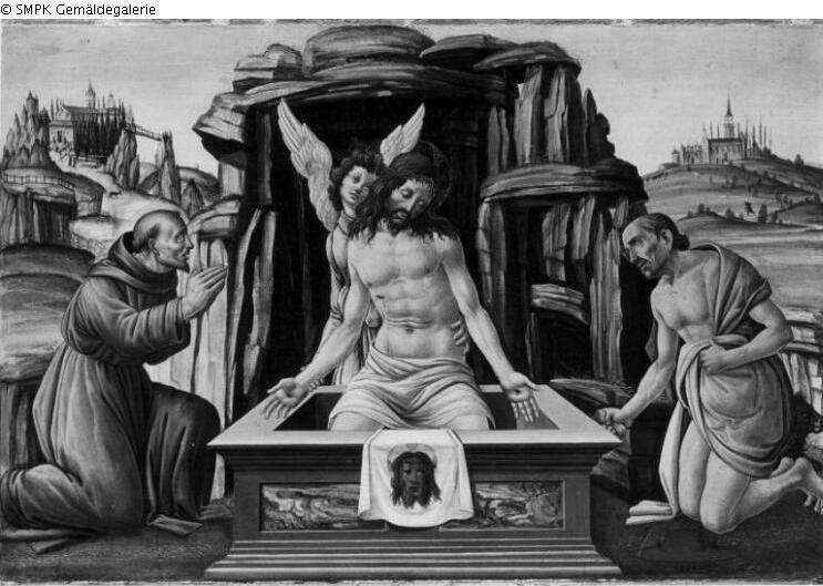 Panel painting: Depiction: the Man of Sorrows as a half and three-quarter figure; three-quarter figure