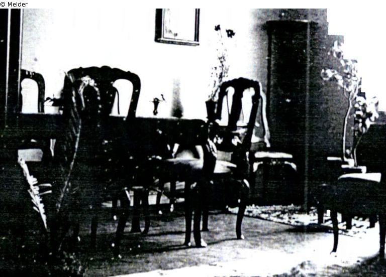 WGA: "1 Stuhl moderne Kopie; […] der Bueffetschrank war ein kleiner, seltener Frankfurter Schrank um 1700, ca. 170x100 cm, Hellbraun, Nußbaum, gekehlt) und die zwei 'Abstelltische' […] 2 sudeutsche Konsolen."