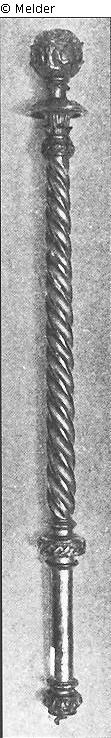 Search Request | Object report Heroldsstab Lost Art-ID404317 Previous Next TitleHeroldsstab Dating1700 (um)Object typeCrafts and other folk artsGroup of reported objectsCrafts and other folk artsMaterial / TechniqueWood / carved ; gildedInventory number3026Description angeblich bei der Krönung in Königsberg benutzt Read more Read less Collection Preußische KroninsignienProvenance Prussian crown insignia, Hohenzollern-Museum, Monbijou palace, Berlin; lost in 1945. Read more Read less Published since2008 Contact Michaela BlankartPositionGeneralverwaltungPhone+49 (0) 30 803 1138E-Mailberlin@preussen.de Contact Stefan SchimmelPositionKunstsammlungenPhone+49 (0) 30 803 1138E-Mailschimmel@preussen.de