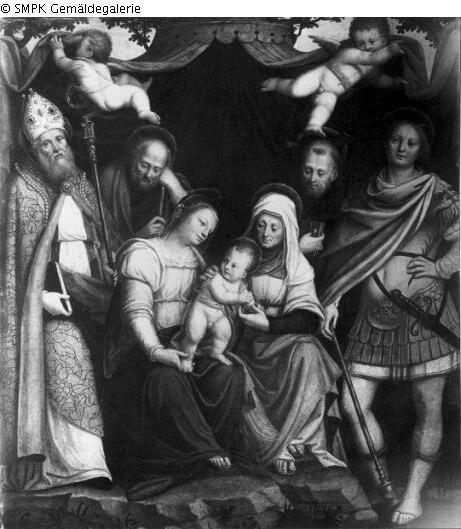 (former) administration: Berlin; (public) collection; National Museums; Department: Gemäldegalerie; Inv. No. 348; Type of accession: purchase; Date of accession: 1821; (temporary) administration: Rome; (semi-public) collection; German Embassy to the Holy See; Time of ownership: until 1945; Type of accession: loan; Date of accession: before 1931; Previous owner: Berlin & London; (private) collection: Solly, Edward; Time of ownership: until 1821