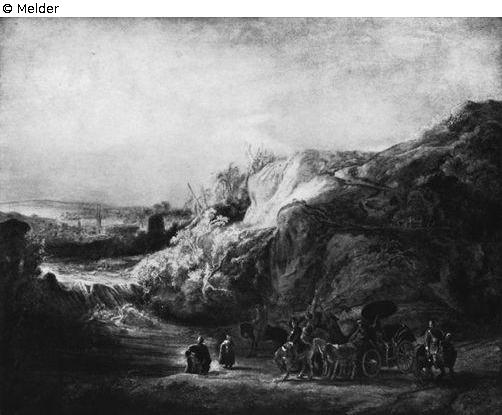 Anonym: Berliner Rembrandtausstellung. In: Die Kunstauktion. 4(1930)8, S.12f, hier S.13 (Auszug); Anonym: Eine Rembrandt - Landschaft Im Berliner Kunsthandel. In: Der Cicerone. 20(1928)2, S.84; Kurt Bauch: Rembrandt. Gemälde. Berlin 1966. Kat. Nr. 542; Abraham Bredius: Rembrandts Gemälde. Wien 1935. Nr. 439; Abraham Bredius: Some early Rembrandts. In: Burlington Magazine 45(1924)259, S.59, Plate II; GB - NGA27/1/1/10 (1904–33), Agnew's stock books, Blatt 199 unter Externer Link ; Heide Grape-Albers (Hrsg.): Die holländischen und flämischen Gemälde des 17. Jahrhunderts. Heidelberg 2020. Kritischer Katalog mit Abbildungen aller Werke. Kat. Nr. 151, S.295-299; Dora Landau: Die Rembrandt-Ausstellung. Auftakt zur Hundertjahrfeier der Berliner Museen. In: Der Kunstwanderer. 11.12.(1929/1930)1.2. Märzheft, S.245-250, hier S.246; Musée du Louvre: Nouvelles acquisitions du département des peintures. Paris 1987. S.72-74, Kat. Nr. R.F. 1985-82, hier S.74; NL - RKD, Fichescollectie Cornelis Hofstede de Groot. Box 210, Card Number: 1425238 unter Externer Link ; NL - RKD, Fichescollectie Cornelis Hofstede de Groot. Box: 210. Card Number: 1425828 unter Externer Link ; Die Pelikan-Kunstsammlung aus dem Besitz des Hauses Günther Wagner, Hannover, Pelikan-Werke und der Familie Beindorff im Kunstverein Hannover vom 28. April bis 16. Juni 1963; Alfred Scharf: Rembrandts Landschaft mit der Taufe des Kämmerers. In: Cicerone. 22(1930)7, S.192f.; Wolfgang Stechow: Dutch landscape painting of the seventeenth century. London 1966. S.135, Abb. 274; Stichting Foundation Rembrandt Research Project (Hrsg.): A Corpus of Rembrandt Paintings. Band 3. Dordrecht, Boston, Lancaster 1989. Kat. Nr. C 116. S.729-736; Christian Tümpel: Rembrandt. Mythos und Methode. Königstein im Taunus 1986. Kat. Nr. A 120; W. R. Valentiner: Rembrandt. Wiedergefundene Gemälde. Stuttgart 1921. S. 41; Werner Weisbach: Rembrandt. Berlin Leipzig 1926. S.403f, Abb. 114.