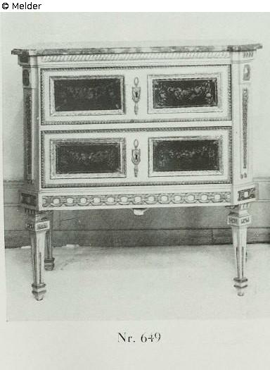source: Kunsthaus Heinrich Hahn: Sammlung V. O., Gemälde, Möbel des 18. Jahrhunderts, Metallarbeiten, aus verschiedenem Privatbesitz, Gemälde alter Meister, Gemälde und Handzeichnungen. Auktion vom 07.-08.05.1940 (Katalog Nr. 61). Frankfurt a. M. 1940. Kat. Nr. 649.