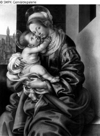Panel painting: depiction: Madonna: Mary seated or enthroned (sometimes half-figure) and holding the Christ child in her lap (or in front of her breast); throne; sitting