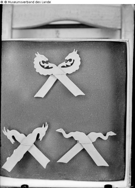 Reduced models of gable symbols designed according to animal motifs.