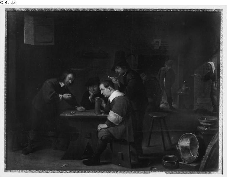 The players (dice-playing soldiers in interior - A Tavern interior)